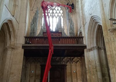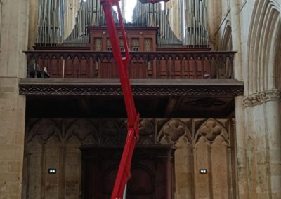 Nous mettons notre expertise au service de la préservation du patrimoine. Nos nacelles et grues sont utilisées pour des missions spécifiques telles que l’entretien des plafonds de la Cathédrale de Bayeux ou la rénovation du Château de Caen.
